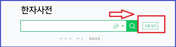 한자사전에서 옆에 있는 고급검색을 클릭합니다.